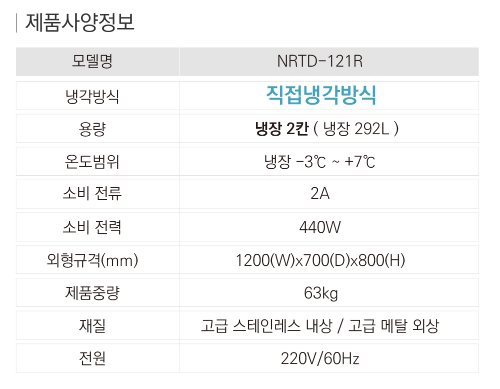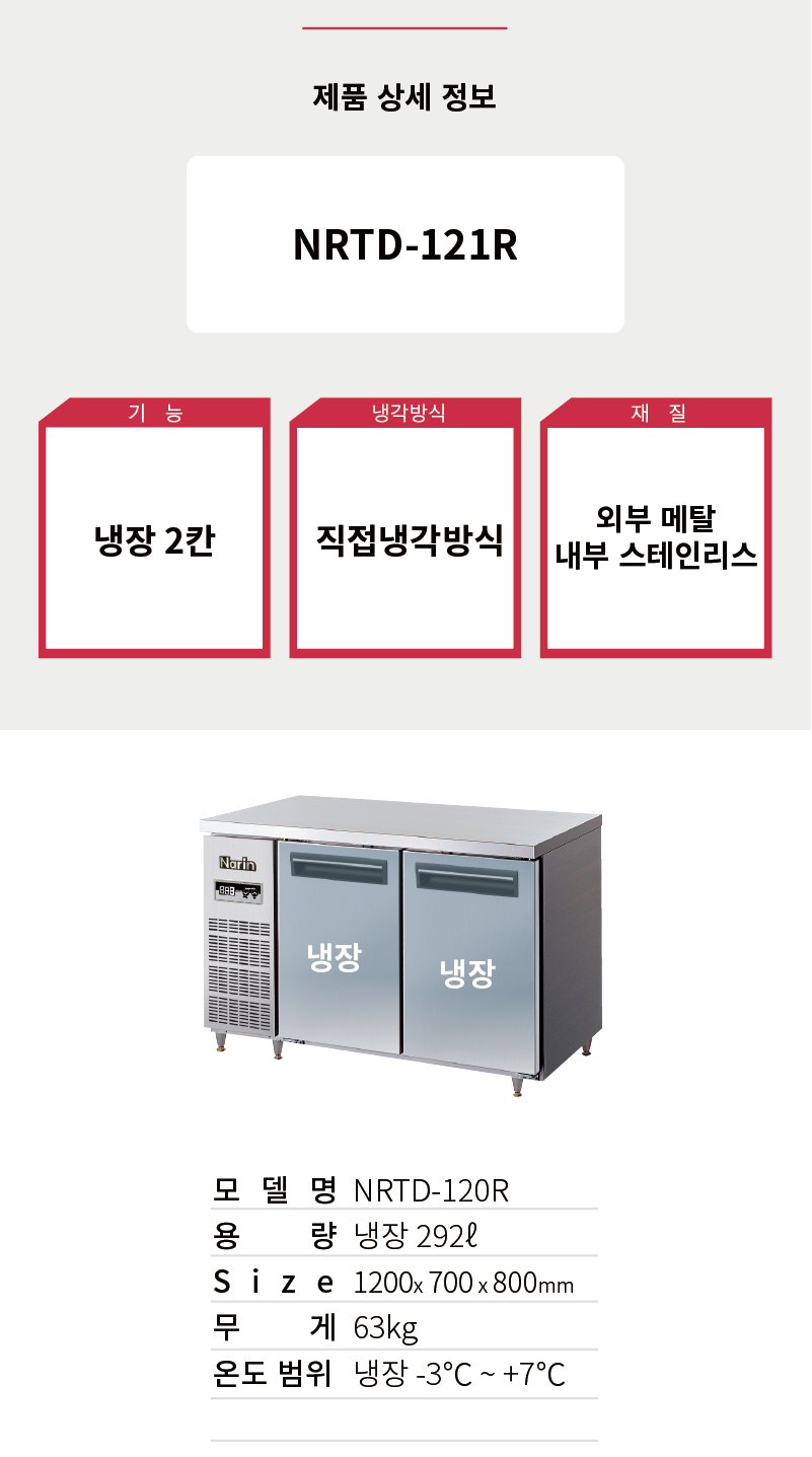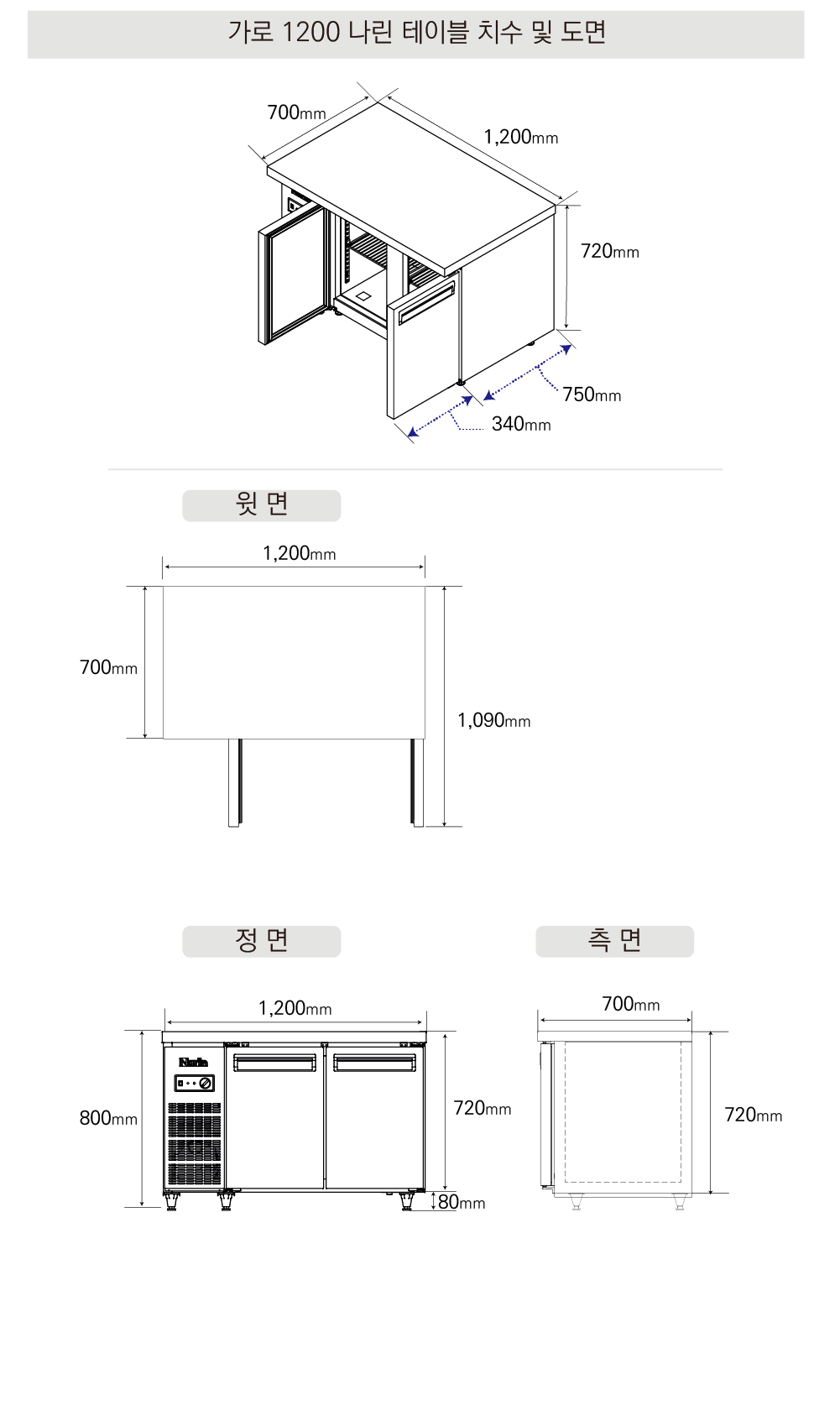 나린 가로 1200 테이블 냉장고·냉동고 도면